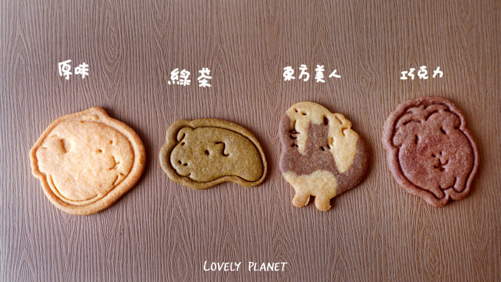 成分:日本麵粉、法國發酵奶油、糖、雞蛋、杏仁粉、鹽、香草醬/可可粉/綠茶粉/東方美人粉